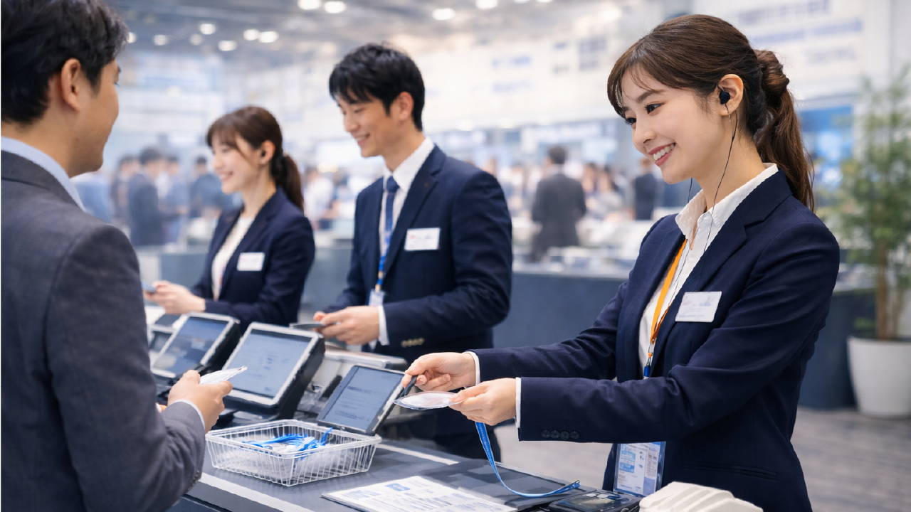 展示会当日の機材トラブルやネットワーク障害などを迅速に対応します。数百件にのぼる展示会受付運営の実績を持つ専門チームが、安心かつ安定した受付対応を提供します。